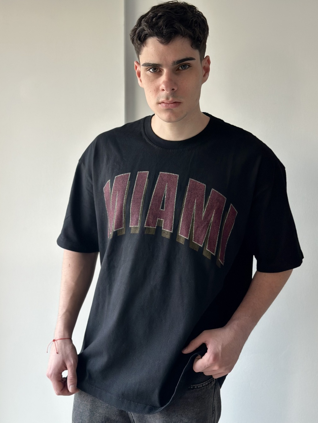 Remera oversize. Cuello redondo y manga corta. Estampado combinado a contraste en trasero.